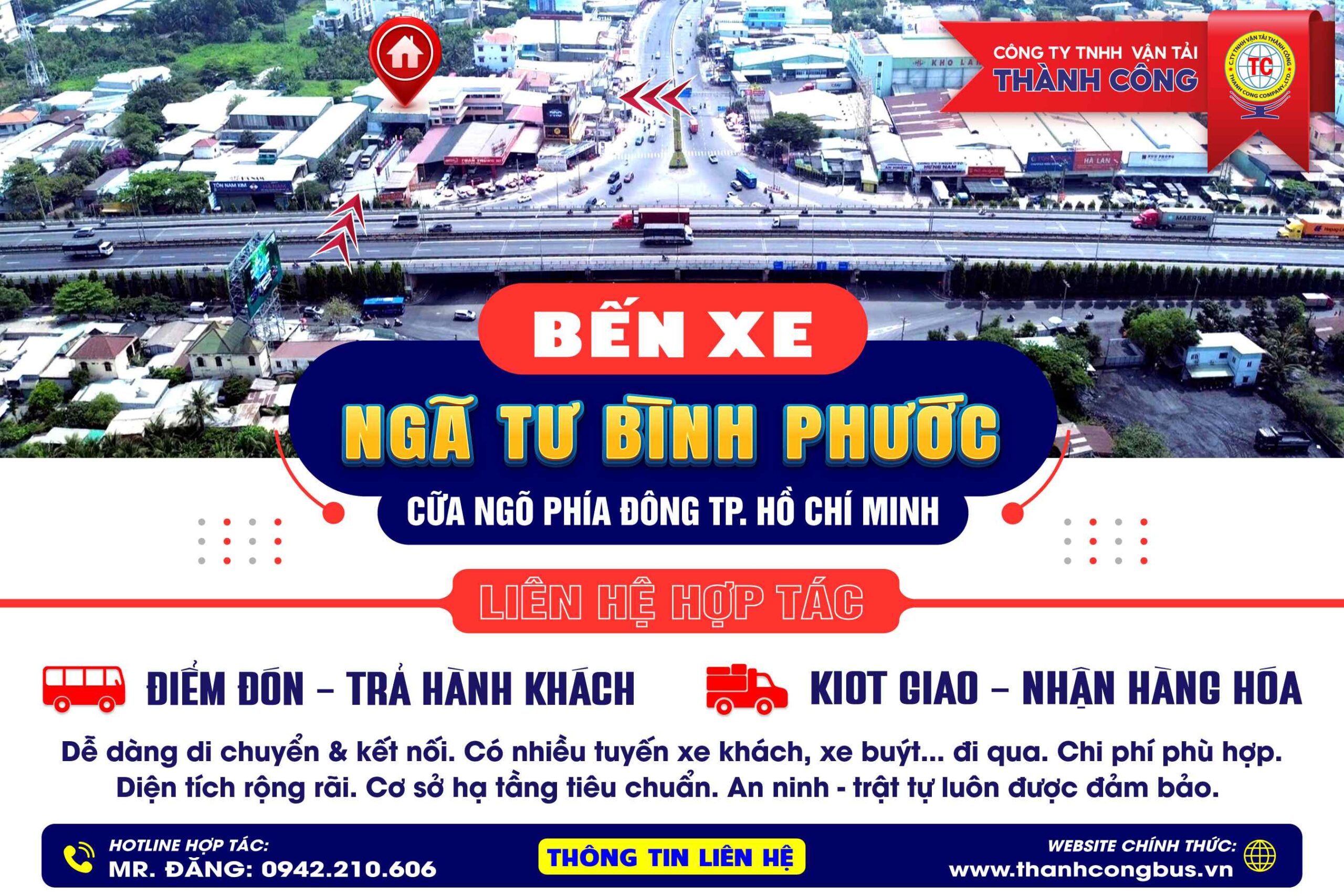 Bến xe Ngã Tư Bình Phước của Công ty TNHH Vận Tải Thành Công là điểm đón trả hành khách và trung tâm kiot hàng hóa chiến lược, kết nối các khu vực của TP. Hồ Chí Minh ( kể cả Bình Dương, Vũng Tàu) và Đồng Nai (kể cả Bình Phước).